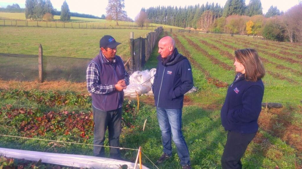 Hasta el predio de Juan e invitados por el pequeño campesino, llegaron el director de INDAP, Jorge Sánchez, junto a la jefe de la agencia de área de La Unión, Alejandra Bartsch, quienes recorrieron la plantación de berries, de 1,5 hectáreas, y conversaron sobre los avances que el agricultor ha tenido en el último tiempo.