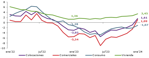 En el primer mes del año las colocaciones del sistema bancario crecieron un 1,61% en 12 meses, principalmente, por el…