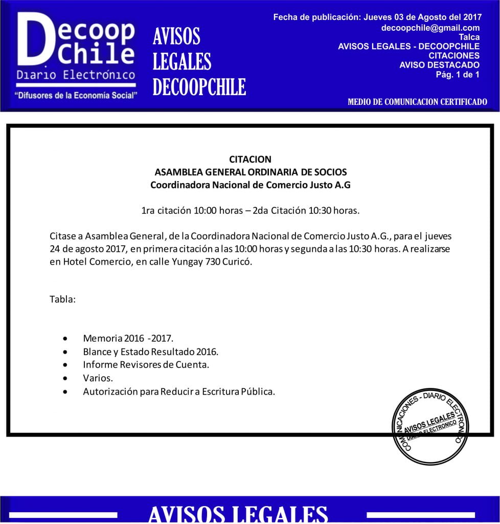item-thumbnailSe cita a Junta general a los socios de la Coordinadora Nacional de Comercio Justo A.G