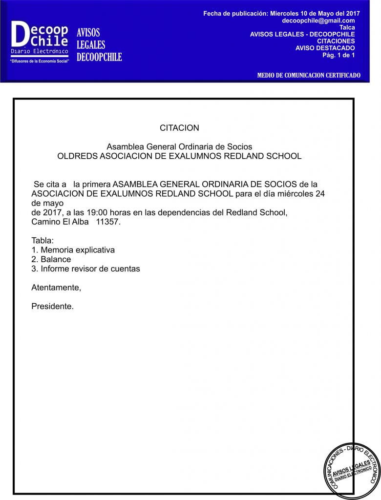 Junta General de Socios: “ OLDREDS ASOCIACION DE EXALUMNOS REDLAND SCHOOL”