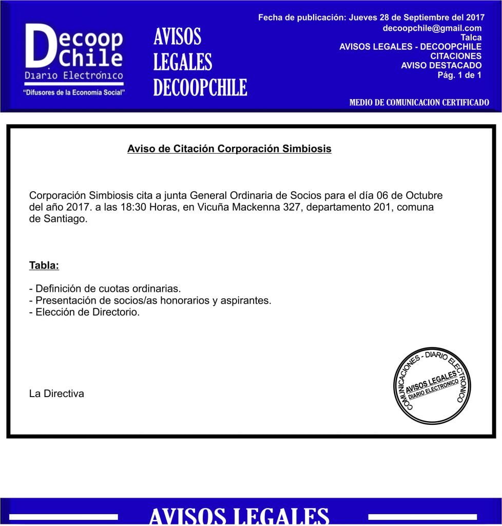 Junta General Ordinaria de Socios: “Corporación Simbiosis.”
