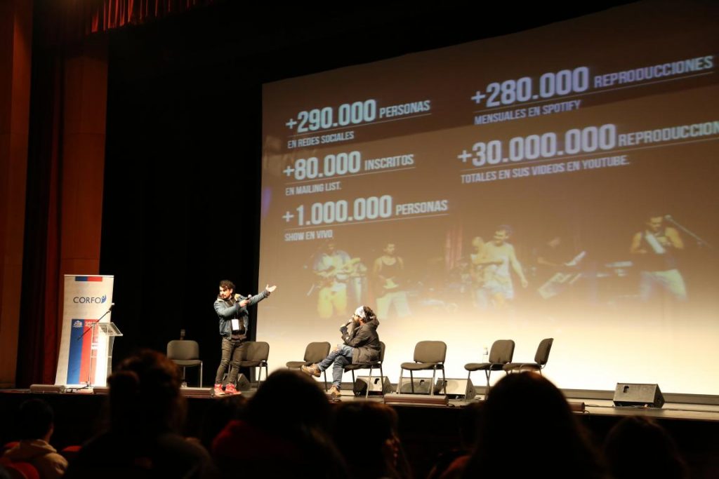 Mientras que su manager Ricardo González, explicó cómo se manejan las bandas chilenas en la industria musical, en términos de contratos, de número de shows al año, gestión logística, actividades promocionales y uso de redes sociales, entre otros.