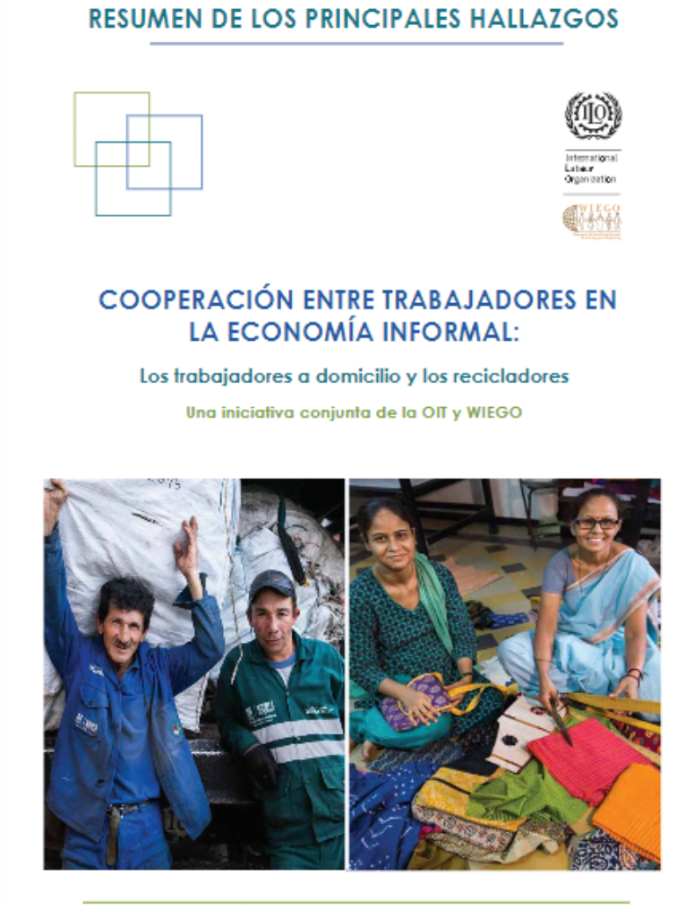 Este es un resumen de los hallazgos principales del informe “Cooperation among workers in the informal economy: A focus on home-based workers and waste pickers” (Cooperación entre trabajadores en la economía informal: un enfoque sobre trabajadores a domicilio y recicladores). Este informe forma parte de una iniciativa conjunta de la OIT y WIEGO, que trata de comprender la naturaleza y alcance de las cooperativas, y otras iniciativas y organizaciones sociales y de la economía solidaria, formadas por trabajadores en la economía informal. Se centra en los desafíos, oportunidades, obstáculos y prácticas actuales en las cooperativas de recicladores y trabajadores a domicilio para informar sobre acciones e intervenciones futuras que fomenten el crecimiento cooperativo.