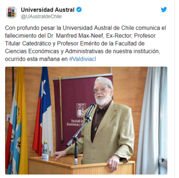 Este jueves, la Universidad Austral informó la muerte de su profesor y ex Rector, Manfred Max Neef.