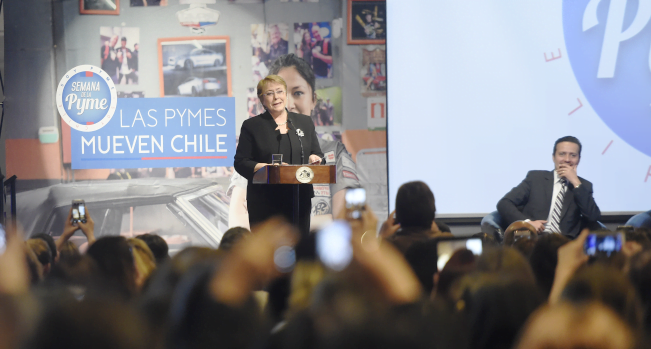 La Presidenta de la República, Michelle Bachelet, participó esta mañana en el 5° Encuentro Empresarial Mujeres Emprendedoras “Somos mujeres, somos empresarias”, evento organizado por Propyme, que cuenta con el patrocinio del Ministerio de Economía y que reúne a más de 300 empresarias y es parte de las actividades de la Semana de la Pyme, del 25 al 29 de septiembre